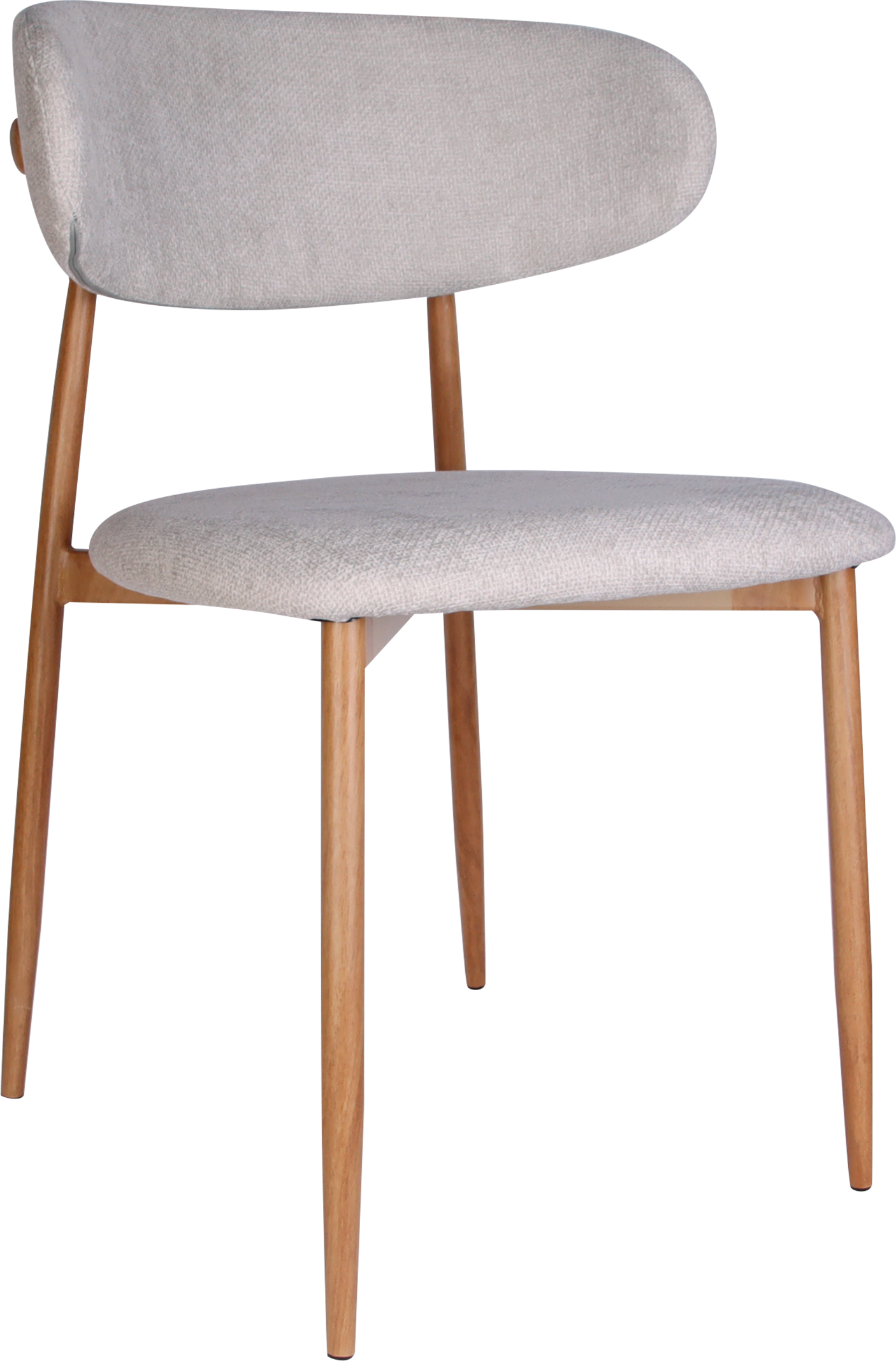 A estrutura fixa conta com pés finos e levemente inclinados em madeira aparente de tonalidade clara, que reforçam a sensação de leveza e trazem um toque natural ao conjunto. Versátil e elegante, a Cadeira Luna é perfeita para salas de jantar, áreas gourmet e espaços auxiliares com estética contemporânea.